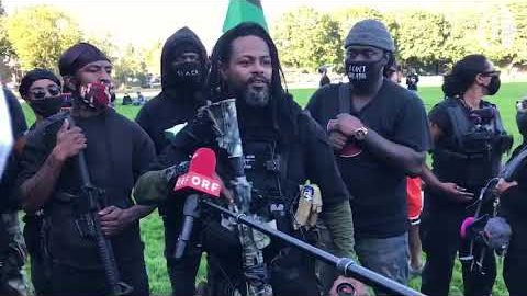 ผู้ประท้วงรวมตัวกันที่ Irving Park ทางตะวันออกเฉียงเหนือของพอร์ตแลนด์ เพื่อต่อต้านการชุมนุมของ Proud Boys