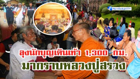 ลุงนักบุญเดินเท้า 1,300 กม. จากพังงา มากราบหลวงปู่สรวง ที่วัดไพรพัฒนา ใช้เวลา 1 เดือน 20 วัน เท้าแตกพุพอง มีชาวพุทธบริจาคเงินคับคั่ง