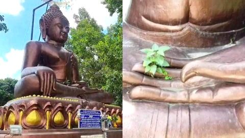 ฮือฮาต้นโพธิ์ออกปลายนิ้วพระพุทธรูปสิงห์ หนึ่ง