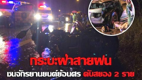 กระบะฝ่าสายฝน ชนจักรยานยนต์ย้อนศร ดับสยอง 2 ราย