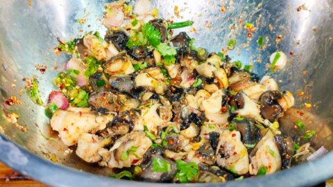 เคยกินป่าว ก้อยหอยเชอรรี่ อีสานแท้ๆเขาปรุงแบบนี้เลยละ