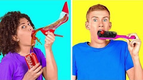 อาหาร VS อุปกรณ์แปลกๆ || ใครกินหมดก่อนชนะ! ชาเลนจ์อาหารโดย 123 GO! CHALLENGE