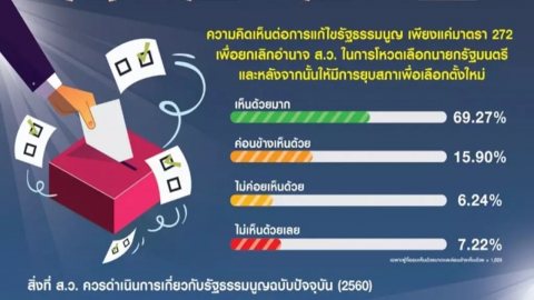 โพลระบุ 61.27% เห็นด้วยอย่างมากแก้ รธน. ไม่ให้ ส.ว.เลือกนายก