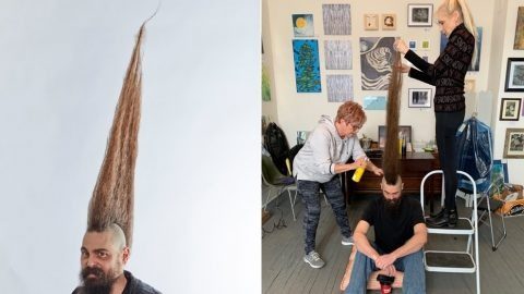 ชายคนนี้ได้รับสถิติโลกจากกินเนสส์ สำหรับผู้มีผมทรง Mohican สูงที่สุดในโลก ถึง 108.2 ซม.