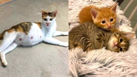 'Boba' แม่แมวจรจัดท้องแก่ที่มีช่วงเวลาชีวิตดีๆ ในช่วงเป็นคุณแม่ลูกอ่อน