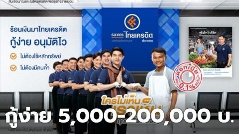 ใครไม่ให้กู้เราให้ ธนาคารไทยเครดิต กู้ง่าย 5,000-200,000 บาท
