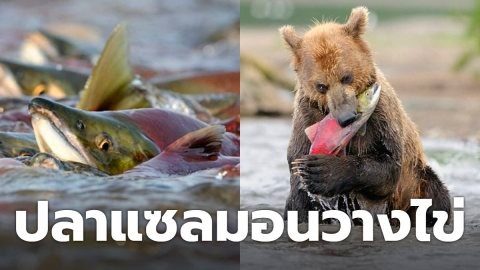 ปลาแซลมอนวางไข่ที่ทะเลสาบ Kuril ใน Kamchatka