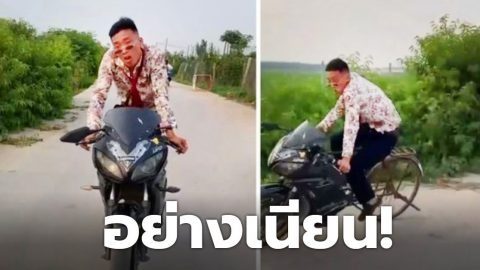 หนุ่มโชว์ขับมอเตอร์ไซค์สุดหรู สุดท้ายชาวเน็ตขำกลิ้ง..นายปลอมได้เนียน! (มีคลิป)