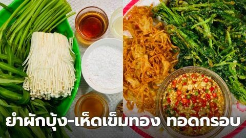 ยำผักบุ้งทอดกรอบ เห็ดเข็มทองทอดกรอบ น้ำยำรสเด็ด