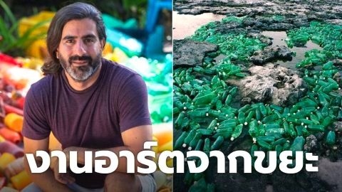 ศิลปินหนุ่มสร้างงานศิลปะน่าทึ่งจากขยะตามชายหาด หวังให้ผู้คนตระหนักถึงปัญหามลภาวะพลาสติกทั่วโลก