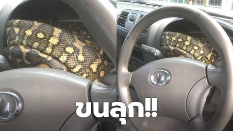 ขนลุกมาก ชายออสซี่เจองูหลามยักษ์นอนขดอยู่หลังพวงมาลัยรถ หวั่นเกิดอันตรายโทรเรียกนักจับงุชื่อดังช่วยด่วน!!
