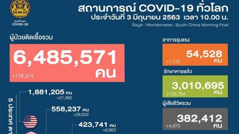 สถานการณ์ โรคติดเชื้อไวรัสโคโรนา 2019 (COVID-19) ทั่วโลก ณ วันที่ 3 มิถุนายน 2563