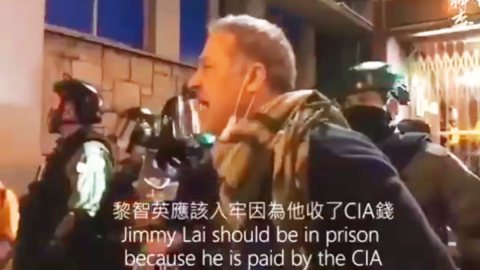 ชาวสวิสคนนึงยืนด่ากลุ่มผู้ประท้วงขาวฮ่องกง