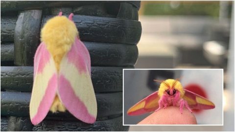 หญิงสาวแบ่งปันภาพถ่าย Rosy maple moth ผีเสื้อกลางคืนที่มีสีสันสวยงามหวานแหวว ที่พบได้ในทวีปอเมริกาเหนือ