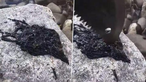 พบสิ่งมีชีวิตสีดำประหลาด ขยับตัวยุบยับไปมาบนโขดหิน หลายคนสงสัยช่างคล้ายกับ Venom!! (มีคลิป)