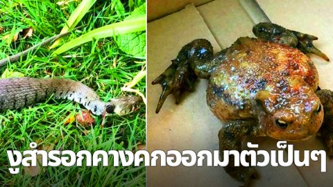 ช่วงเวลาน่าขนลุก ชายอังกฤษพบงูตังใหญ่พุงกางสำรอกคางคกตัวเป็นๆออกมาทางปาก (มีคลิป)