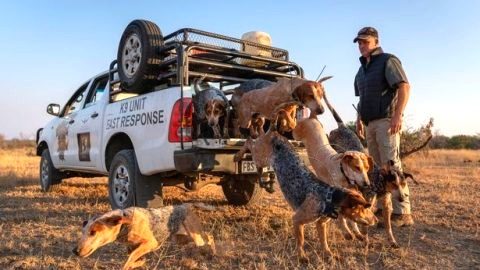 จนท.อุทยานฯ ซุ่มฝึกหน่วยลาดตระเวนสี่ขา ป้องกันการลอบล่าแรดในแอฟริกาใต้