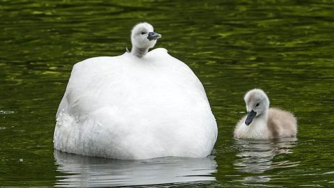 ช็อตสำคัญ! ช่วงเวลาที่น่ารักของครอบครัวหงส์ ขณะให้ลูกขี่หลังข้ามทะเลสาบ