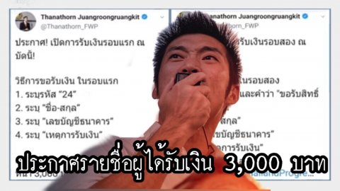 ประกาศรายชื่อผู้ได้รับเงิน 3,000 บาท