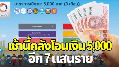 เช็กด่วนเช้านี้ คลังโอนเงิน 5,000 บาท เพิ่มอีก 7 แสนคน