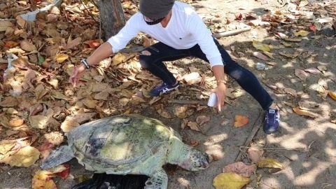 พบเต่าตนุขนาดใหญ่ตายเกยตื้นชายหาดทะเลระยอง เจ้าหน้าที่ผ่าพิสูจน์พบว่าปอดอักเสบ