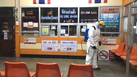 พังงา เจ้าหน้าที่เร่งฉีดพ่นยาฆ่าเชื้อและวัดอุณหภูมิร่างกายของประชาชนที่เดินทางในสถานีเดินรถ บขส.ตะกั่วป่า