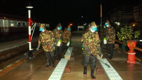 กรมทหารราบที่ 2 รักษาพระองค์ ลงพื้นที่พ่นยาฆ่าเชื้อหลังพบผู้ติดเชื้อในพื้นที่