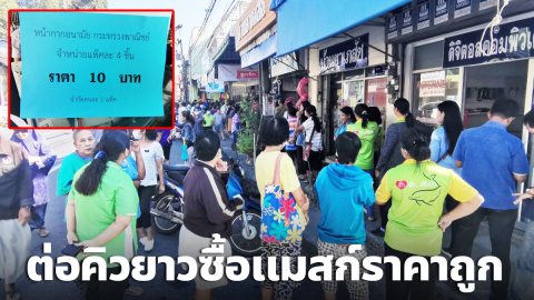 ชาวพังงาคึกคัก แห่เข้าแถวต่อคิวยาวรอซื้อหน้ากากอนามัยธงฟ้าราคาถูก 2.50 บาท (มีคลิป)
