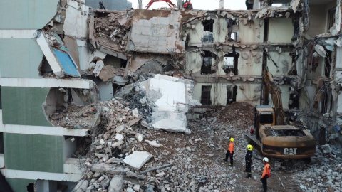 อาคารระหว่างการรื้อถอนทรุดตัว