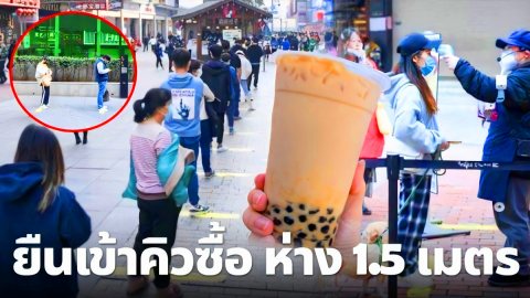 ร้านชาไข่มุกเจ้าดังกลับมาเปิดอีกครั้ง ลูกค้าต้องยืนห่างกัน 1.5 เมตร ก่อนซื้อต้องวัดอุณหภูมิก่อน