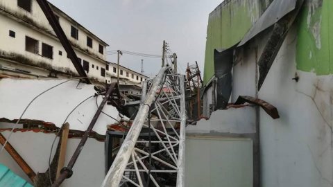 ลมพายุฝนตกกระหน่ำทั่วเมืองต้นไม้ล้ม เสาวิทยุสูง 105 เมตรหักทับบ้านเรือน
