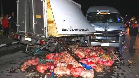 ระทึก! ทัวร์จอดเสียไหลลงเนิน ชนรถยนต์วิ่งบนถนนพังยับ 3 คันรวด คนขับดวงดีรอดตาย