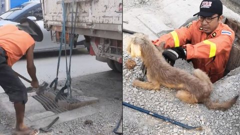 เจ้าหน้าที่ถือค้อนเร่งมือเเข่งกับเวลา ถนนเพิ่งทำเเต่ก็ต้องทุบท่อ โชคดีที่น้ำเเห้ง