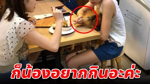 ชาวเน็ตไม่พอใจ?"สาวสวย"ใช้ช้อนป้อนอาหารให้น้องหมาน่ารักในร้านอาหารจนเกิดดราม่า!