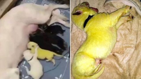 น่าประหลาด! ลูกสุนัขเกิดใหม่มีขนสีเขียวมะนาวสดใส สัตวแพทย์ชี้อาจเป็นเพราะอุจจาระแรก