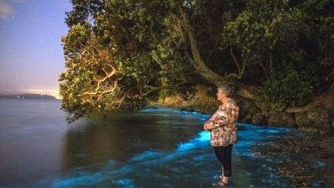 สวยงามตระการตา! ช่างภาพหนุ่มแบ่งปันภาพถ่ายชายหาดเรืองแสงสว่างไสวด้วยสีฟ้าสดใสที่นิวซีแลนด์