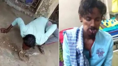 หมองูเจ็บเพราะงู! หนุ่มอินเดียโชว์จูบงูเห่า ก่อนโดนฉกจนปากบวม (มีคลิป)