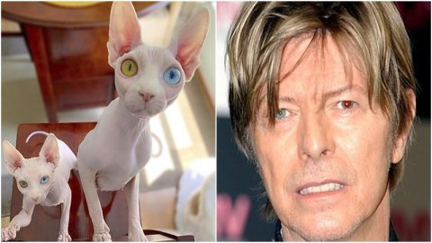 น่ารักแปลกๆ แมวสฟิงซ์ไร้ขนที่มีดวงตาเช่นเดียวกับ David Bowie ราชาแกรมร็อคผู้ล่วงลับ