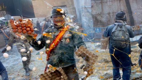 สวยงามตระการตา! แบ่งปันภาพถ่ายเทศกาล Els Enfarinats กับฉากการต่อสู้ด้วยการปาผงแป้งและไข่ในสเปน