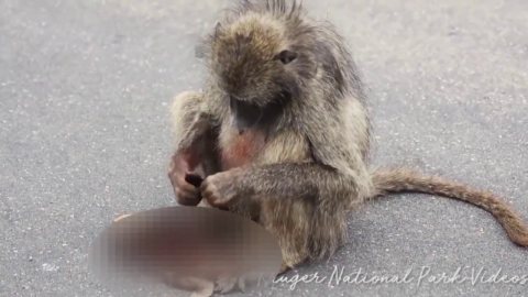 ดูแล้วหัวใจแทบสลาย แม่ลิงปฏิเสธที่จะยอมรับว่าลูกน้อยตายแล้ว หลังจากถูกรถชน (มีคลิป)