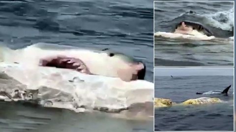 ช่วงเวลาที่น่าทึ่ง ฉลามขาวยักษ์กินซากปลาวาฬขนาดใหญ่นอกชายฝั่งของออสเตรเลีย (มีคลิป)