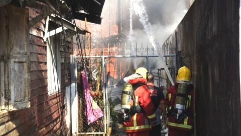 เกิดเหตุเพลิงไหม้ บ้านไม้ชุมชนกลุ่มบ้านเลขที่ 22 สะพานขาว ต.ตลาด อ.เมือง จ.จันทบุรี