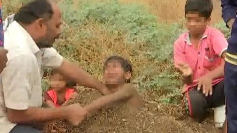 ความเชื่อสุดแปลก ชาวบ้านอินเดียจับเด็กขุดหลุมฝังดินในวันเกิดสุริยุปราคา เชื่อรักษาสมองพิการได้ (มีคลิป)