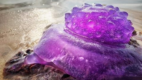 พบแมงกะพรุนสีม่วงหายากรูปร่างคล้ายสิ่งมีชีวิตต่างดาวถูกคลื่นซัดเกยชายหาดที่ออสเตรเลีย