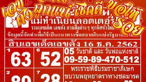 งวดนี้เอาไปรวยอีก! หวยแม่ทำเนียนลอตเตอรี่ งวดวันที่ 16/12/62