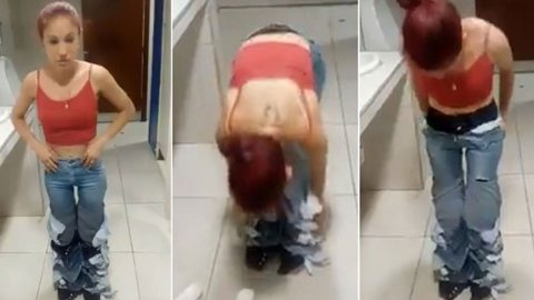 ยัดเข้าไปได้ยังไง? หญิงสาวเปิดเผยเคล็ดลับการใส่กางเกงยีนส์ซ้อนทับกันให้ได้หลายๆตัวต่อหน้ากล้อง หลังถูกจับได้ว่าขโมยของ (มีคลิป)