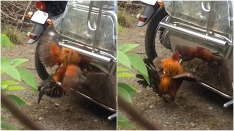 เลือดนักสู้มันพลุ่งพล่าน! ไก่ตัวผู้นิสัยประหลาดหลงต่อสู้กับภาพสะท้อนของตัวเอง กว่าจะรู้ความจริงก็เจ็บไปเยอะ (มีคลิป)