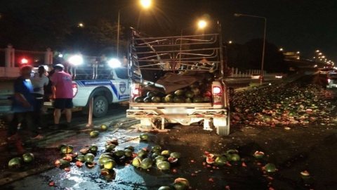 อุบัติเหตุรถกระบะเสียหลักพลิกคว่ำหน้าทางเข้าหมู่บ้านนาโพธิ์