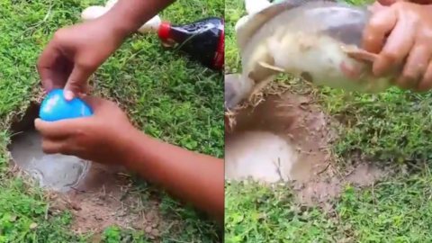 ผู้คนกว่า 5.3 ล้านคน ถึงกับงง!! เด็กชายโชว์ล้วงเข้าไปในโพรงดินที่เต็มไปด้วยโค้ก ไข่ไก่ และเมนทอส จู่ๆก็ดึงปลาออกมา