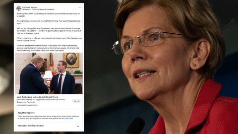 Elizabeth Warren ลงทุนซื้อโฆษณาโพสต์ข่าวปลอม เพื่อทดสอบ Facebook